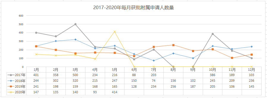 2012-2020年主申請人及附屬申請人的簽證簽發(fā)量