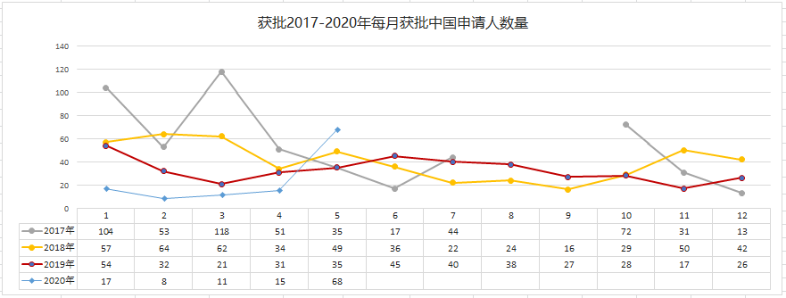 在5月份,中國投資者仍然高居榜首,有68位中國人(4月份只有15位),排在后面的依次是巴西人(30),美國人(19),印度人(19),以及土耳其人(17),值得注意的是,這是美國國籍申請數(shù)目前了解到的最高數(shù)值;