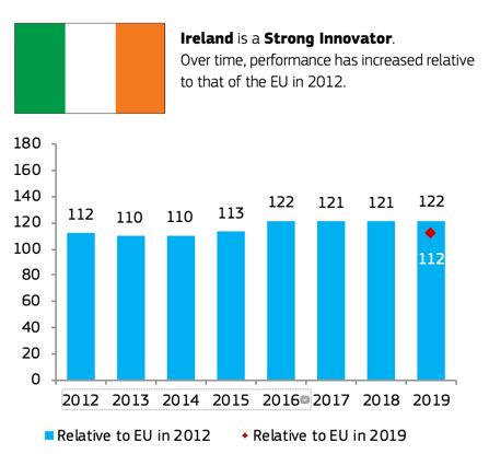 根據(jù)歐盟最新發(fā)布的《2020歐洲創(chuàng)新記分牌》(EIS2020),愛爾蘭連續(xù)多年在各項(xiàng)創(chuàng)新指標(biāo)上接近或超過歐盟平均水準(zhǔn),憑借第9名的綜合成績(jī)被評(píng)為“強(qiáng)力創(chuàng)新者”。